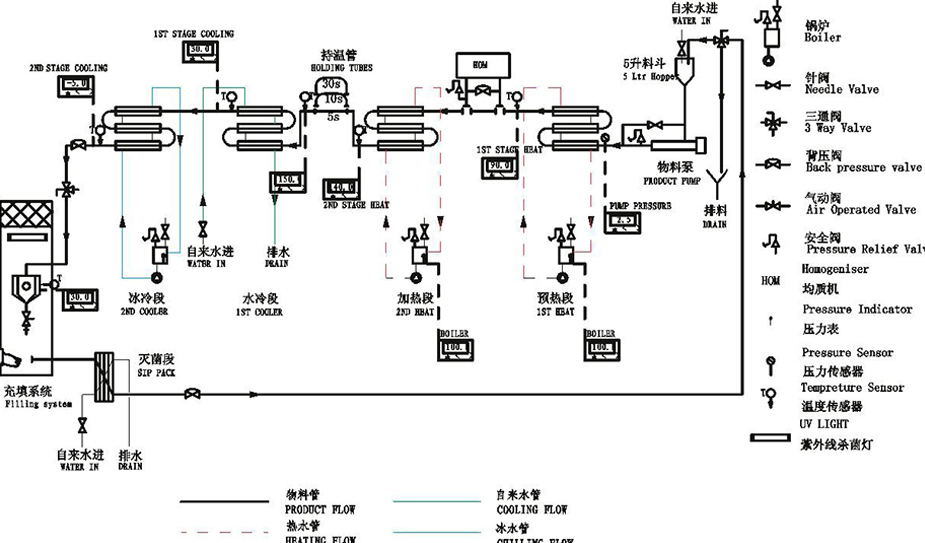 模擬工藝:均質(zhì)、調(diào)配、巴氏殺菌、超高溫瞬時(shí)殺菌和無(wú)菌灌裝等