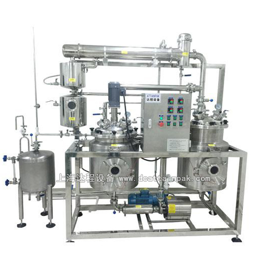 2、此設備是我公司按照精油提取的工藝方式,結(jié)合先進的自動化控制系統(tǒng)在線檢測功能, 開發(fā)的最新型的提取濃縮機組。